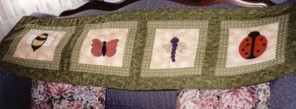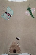 I made a table runner using my bug appliqués. This gardening apron was made from half of a dish towel.