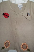 This cute pillow was made by Vicki using the bugs in .sew format This sweater was done by Ginger using the bugs.