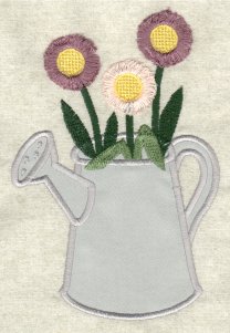 This set contains appliqué and regular embroidery designs, including fringe flowers.
