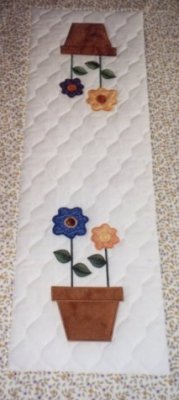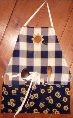 | This apron was made from a dish towel, This tablerunner uses the Jumbo Hoop |