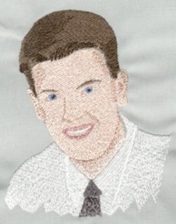 I attended a seminar with instructor Linda Dryer. One class I took was Manually Punching a Photo in PE-Design. Below is a photo of one of my sons and the digitized image I did of him.